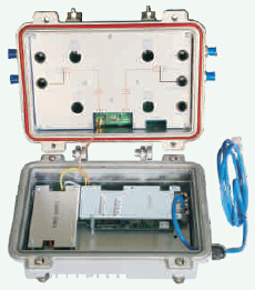 GDCBM700系列EOC局端設(shè)備基于AR7410主芯片,將IP數(shù)據(jù)信號(hào)和CATV信號(hào)混合輸出到有線電視分配網(wǎng),實(shí)現(xiàn)共纜傳輸廣播電視節(jié)目和IP數(shù)據(jù)。它位于EOC網(wǎng)絡(luò)的頂端,可下掛多達(dá)253臺(tái)CNU終端設(shè)備。為用戶提供語音、視頻、數(shù)據(jù)等多種業(yè)務(wù)。